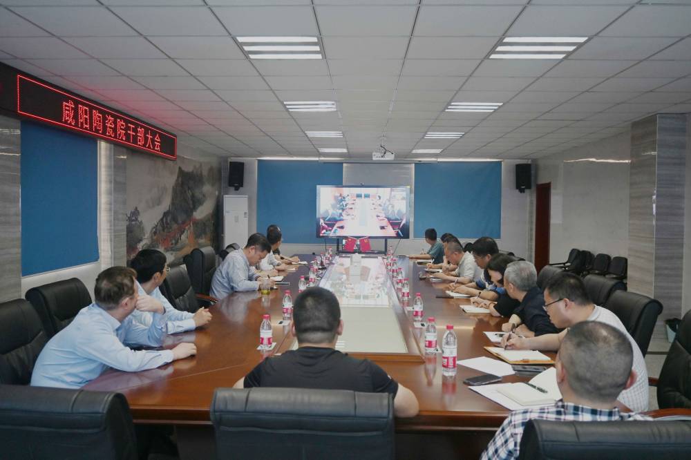 咸陽陶瓷院班子成員、全體中層干部分別通過現(xiàn)場、視頻方式參加會議。
